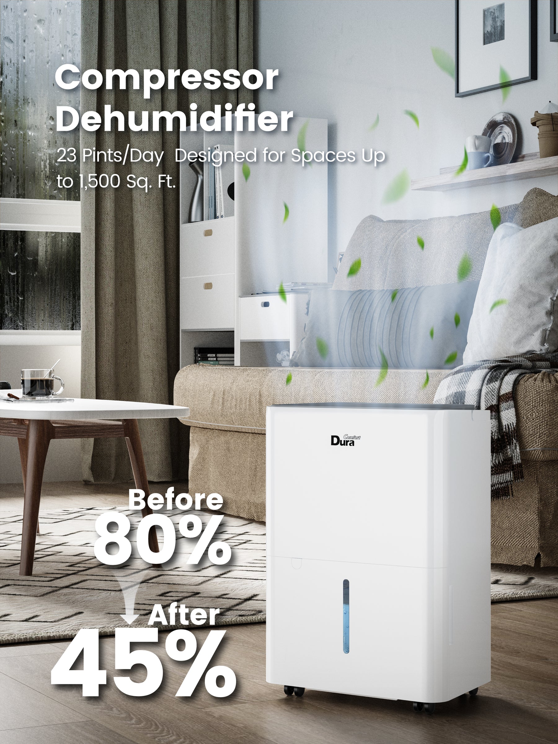 Powerful Dehumidification, Big Results:Don’t let humidity take over your space. This compact dehumidifier removes up to 8 pints of moisture daily and can handle up to 22 pints in high-humidity conditions. It’s perfect for keeping rooms up to 1,000 sq. ft. dry and fresh, whether it's a bedroom, basement, or kitchen.