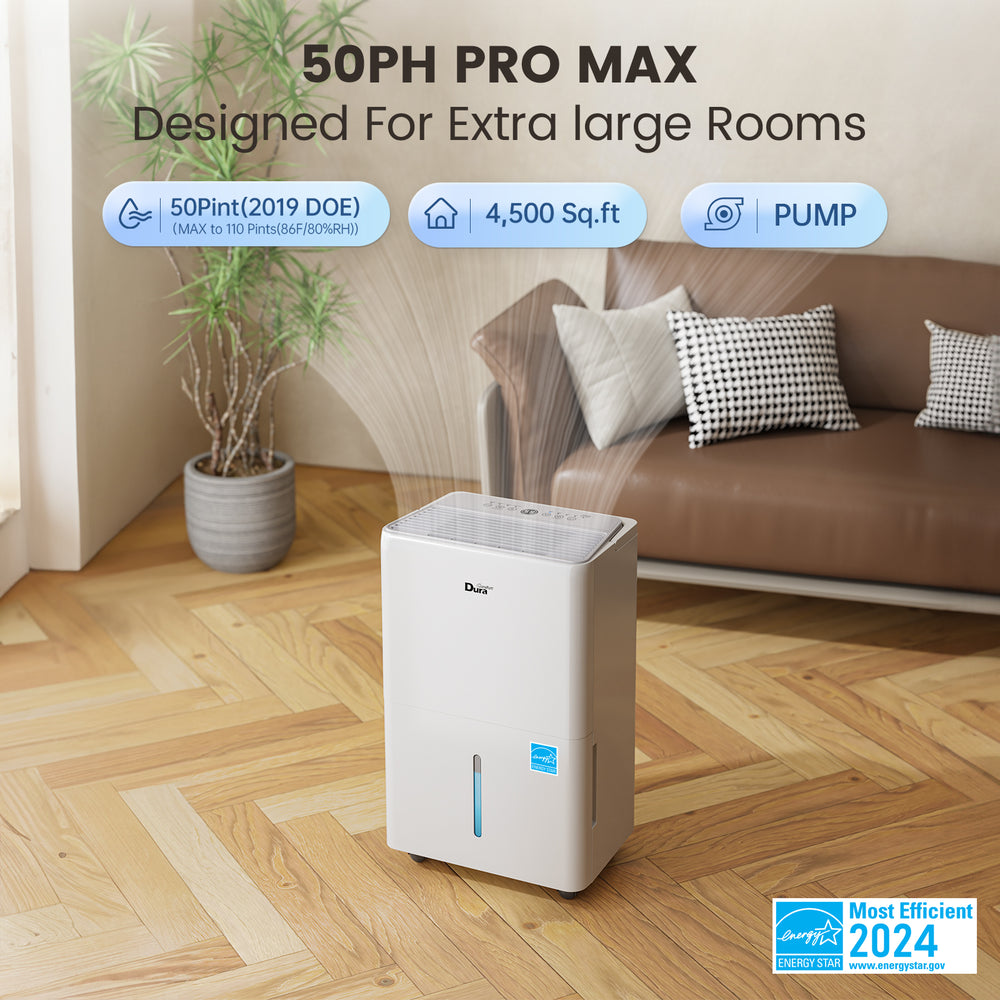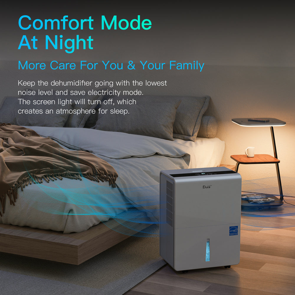 This DuraComfort Dehumidifier is designed specifically for small household spaces of up to 1000 Sq.Ft. This compact powerhouse comes equipped with 360-degree swivel wheels for easy mobility, a discreetly concealed handle for effortless portability, and a 3.28-foot drainage hose, perfect for continuous drainage operation. But what truly sets it apart is its remarkable Comfort Mode, operating at an astonishingly low 33 dB, ensuring a tranquil environment in your home. Say goodbye to excessive humidity and hello to comfort, all with the discreet efficiency of the DuraComfort Dehumidifier. FEATURES: ·Drain Hose ·LED Display ·Washable Filter ·Electronic Controls ·Low-temperature Operation ·Automatic Water Level Shut-off ·115V/60Hz ·24 hours Timer